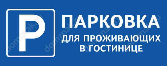 Вы можете заказать Табличку «Парковка для проживающих в гостинице» по индивидуальному дизайну или воспользоваться готовым вариантом от нашей компании.
