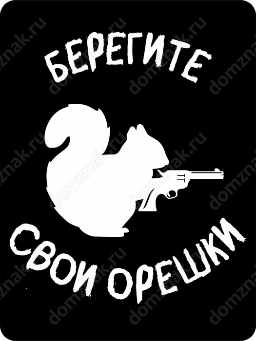 Табличка «Берегите свои орешки» изготовлена из пластика ПВХ, толщиной 4 мм. Изображение наносится по технологии УФ-печати. Табличка предназначена для использования как в помещении, так и на улице.